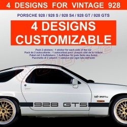 4 Designs kit sticker bas de caisse 928 S S4 GT GTS Collection de sticker compatible avec PORSCHE 9281 kit = 1 autocollant pour le côté gauche + 1 autocollant pour le côté droitNombreux coloris disponibles